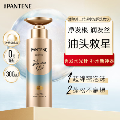 商品名称:潘婷深水泡弹沁润水养氨基酸洗发水-蓬松去油300ml长效保湿 蓬松去油