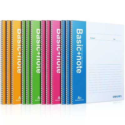 商品名称:得力 deli 螺旋装订笔记本 7682 A5 (混色) 50页/本 12本/封 (颜色随机)