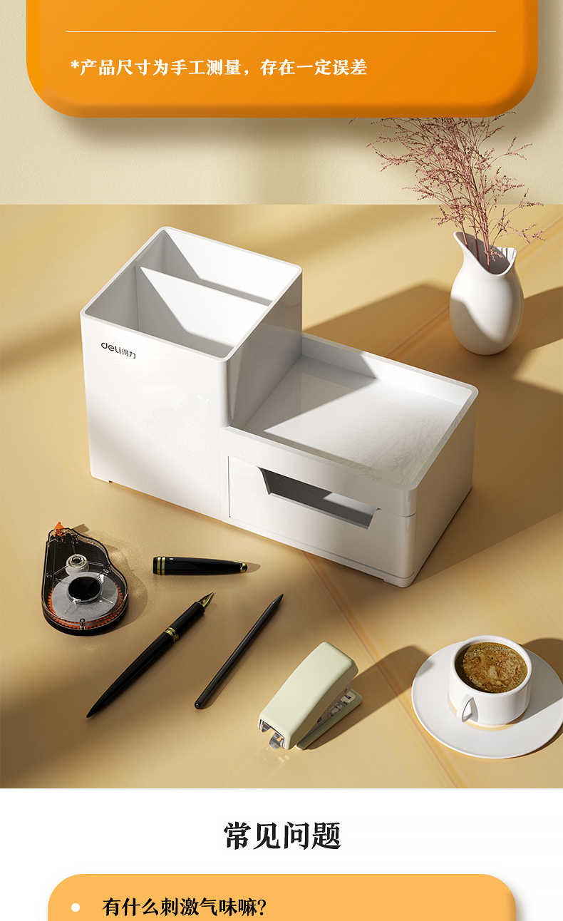 商品名称:得力(deli)居家文具笔筒收纳盒 小物件桌面收纳 首饰收纳盒 8907白色