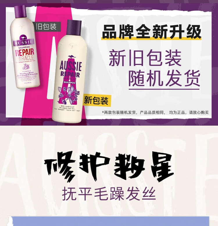 商品名称:澳丝(AUSSIE)澳丝袋鼠洗发水套装修护烫染受损头发补水保湿滋润柔顺洗发露 丰盈洗发露300ml+护发素200ml