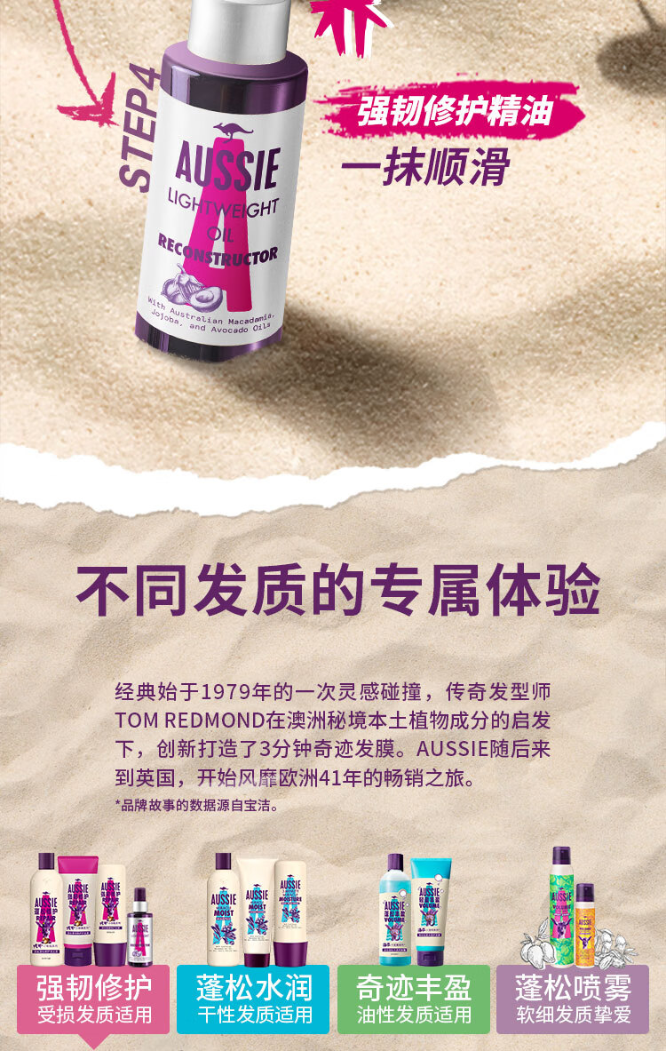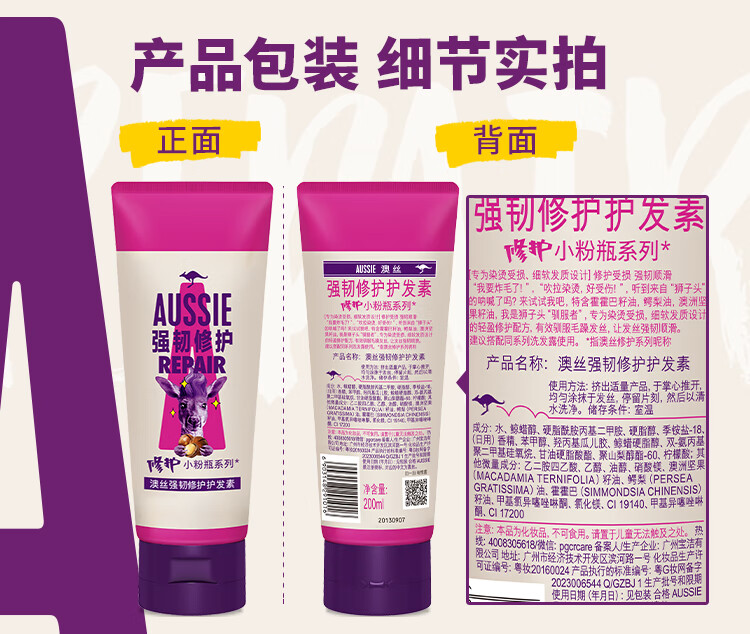 商品名称:澳丝Aussie白袋鼠氨基酸护发素200ml强韧修护抚平毛躁