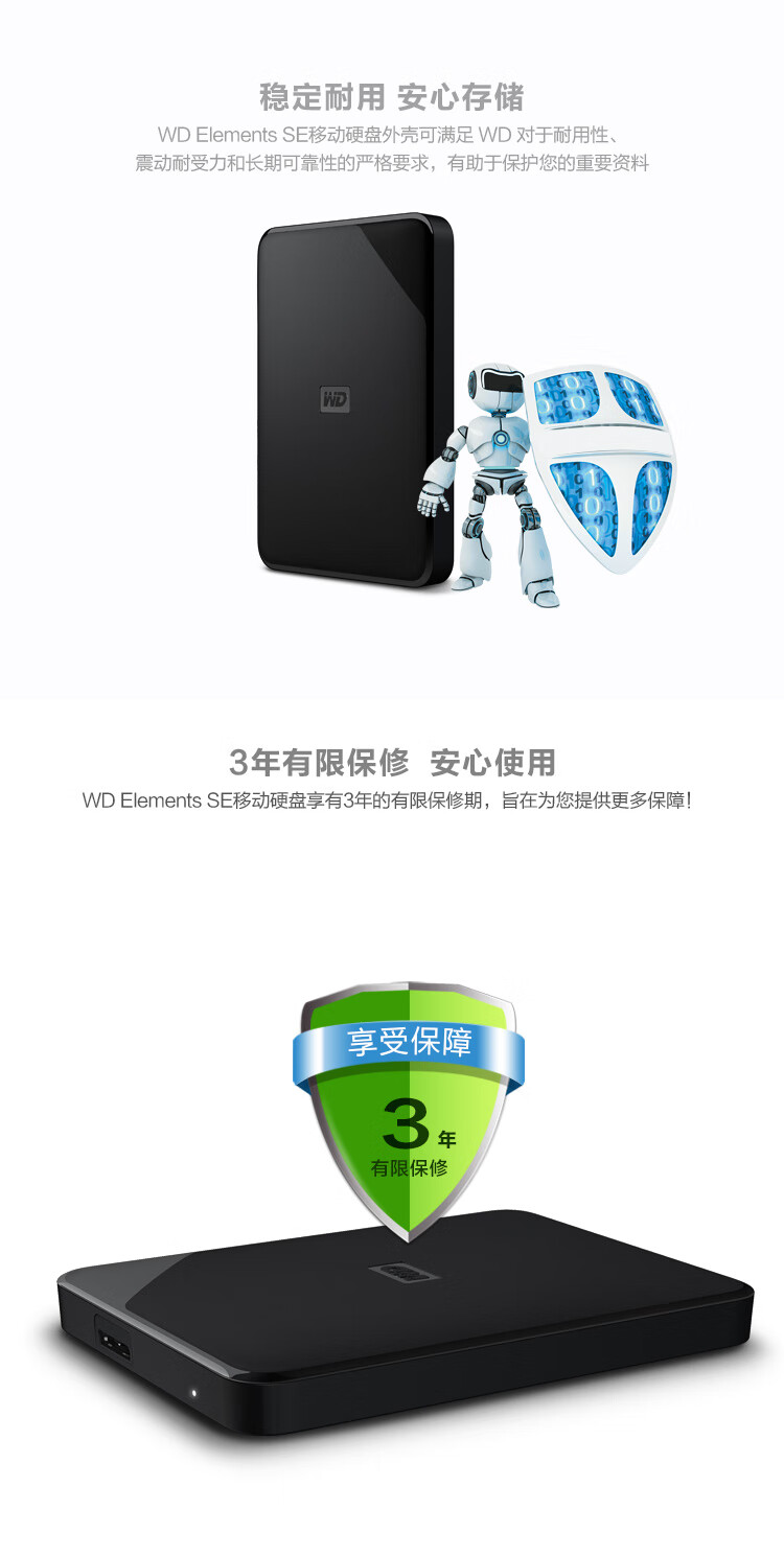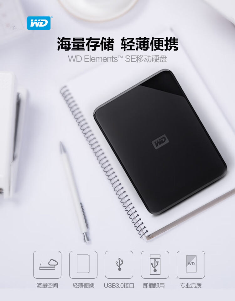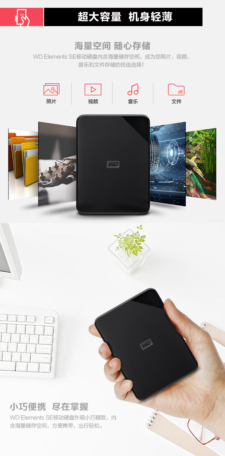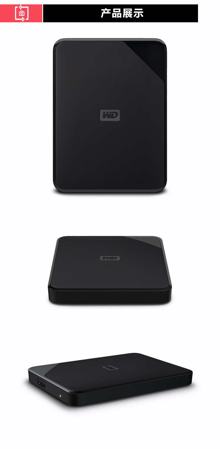 商品名称:西部数据(WD) 2TB 移动硬盘 USB3.0 Elements SE 新元素系列2.5英寸 机械硬盘 高速传输 轻薄便携 存储备份